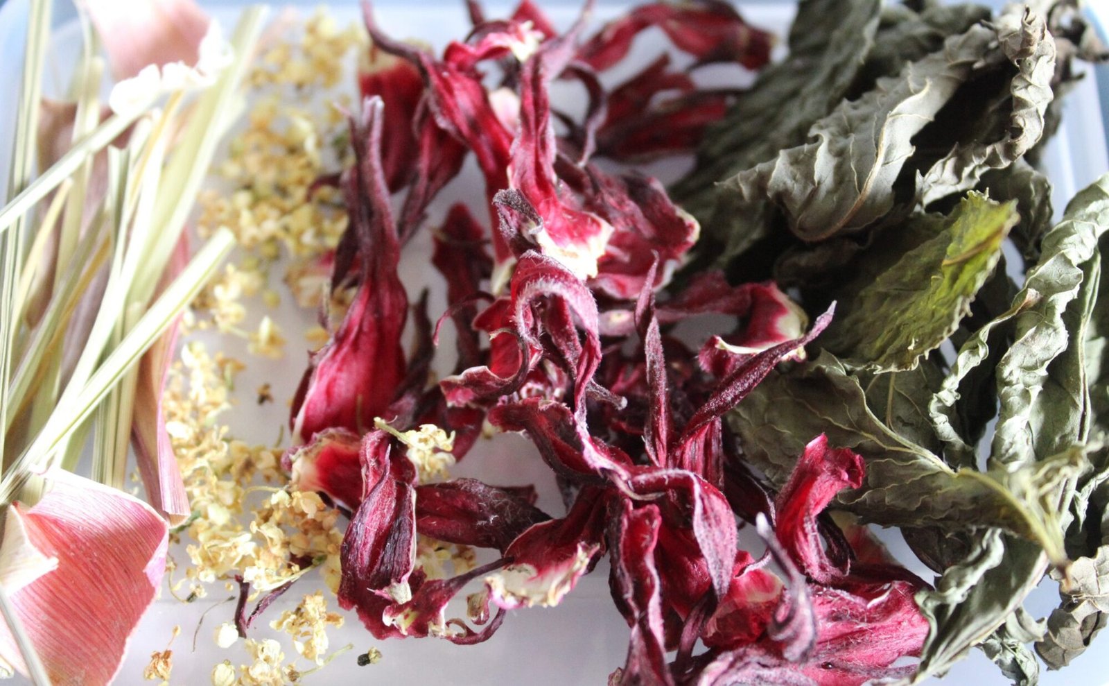 Mint, Rosella, Lemongrass, and Elderflower Tea is packed with natural nutrition and antioxidants! Rosellas are Australian native Hibiscus flowers and create a beautifully pink fruity tea! This is a healing pick me up tonic with Rosella and Lemongrass both having blood pressure lowering and weight loss properties. Mint is great for easing tension headaches, and elderflowers for anti-inflammatory pain relief.